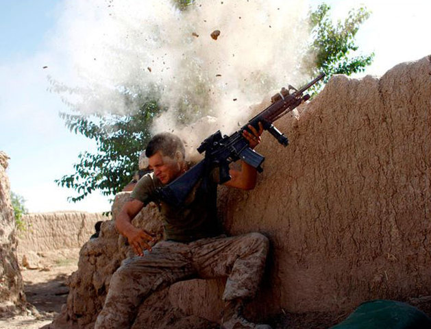 Морской пехотинец США под обстрелом с талибской стороны. Фото: Горан Томашевич, Reuters.