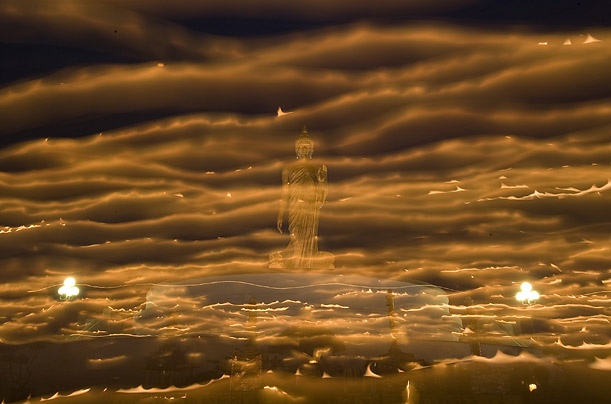 Праздник Asanha Puja. Верующие ходят вокруг большой статуи Будды со свечами в руках. Экспозиция снимка - 25 секунд. Adrees Latif / Reuters.