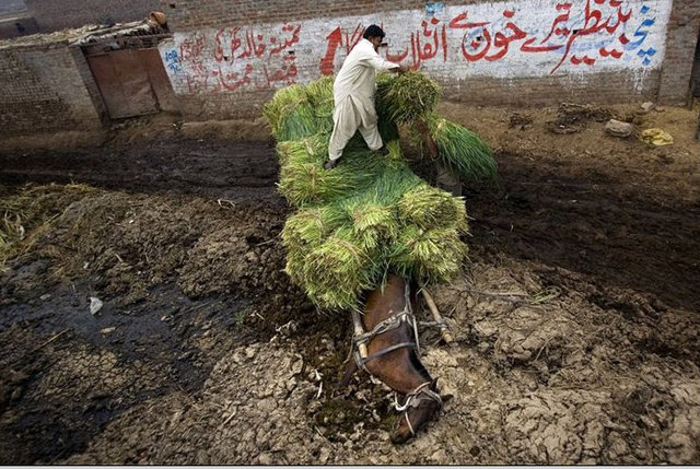 Разгрузка крестьянской телеги. Лошадь просто немного устала, если верить caption. Emilio Morenatti - AP.