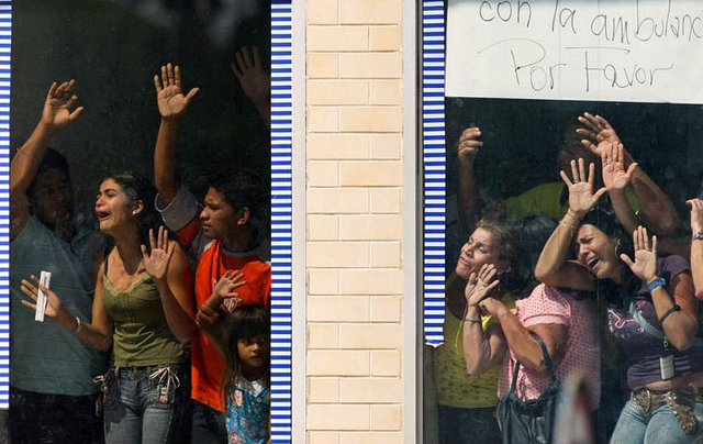 Заложники в помещении банка, удерживаемые грабителями более 24 часов. Juan Barreto - AFP-Getty.