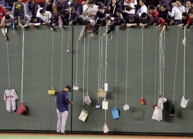 Игрок "Красных носков" Hideki Okajima за раздачей автографов. Koji Sasahara/AP.